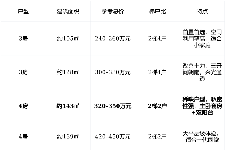 💡 最新动态 :2025年9月新增推售 10#楼 ,主打143㎡四房,目前仍有余货,未见清盘信号。