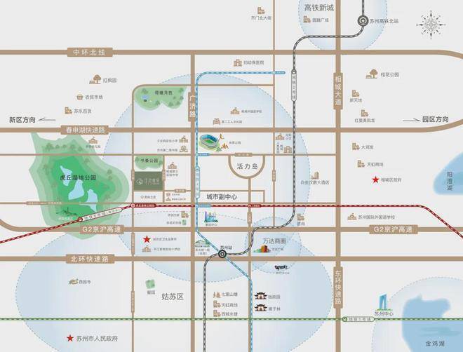 生态商业:虎丘湿地公园(500米)、繁花中心(1.2公里)