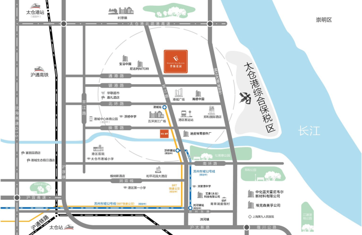 合生伴海(备案名:合生伴海别墅),由苏州瑞银置业有限公司开发,位于太仓港区龙江路与通港路交汇处,紧邻滨江大道,是太仓主城区唯一纯法式联排别墅社区,非洋房、非高层,全为低密独栋产品。