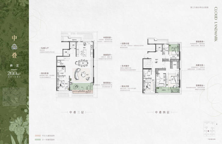 主力户型:建面约252㎡–289㎡,涵盖下叠、中叠、上叠三种产品,其中中叠户型为全盘核心亮点,实现“墅级归家”体验。