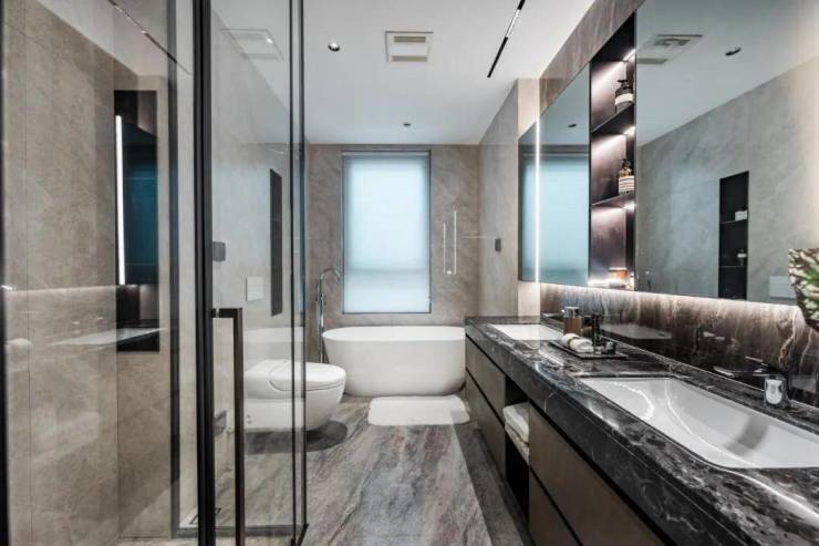 装修标准:精装交付含大金中央空调、菲斯曼地暖、百朗新风系统;厨卫选用欧洲进口品牌(劳芬卫浴、当代龙头、斯麦格厨电),装标约6000元/㎡