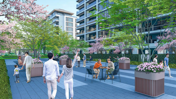 社区商业:项目自带约1.8万㎡小镇中心,涵盖共享客厅、小镇食堂、精品超市等