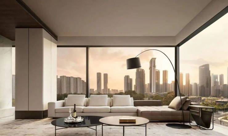 整体营造出现代轻奢度假氛围,以FENDI CASA渗透于空间各个细节之中。88方的超大客餐厅,270度瞰景视野,19米的双面采光,客厅都是L型采光的“无柱转角落地玻璃厅”。每一场轻歌曼舞的派对,背景都带着“H”标的奥体地标群。