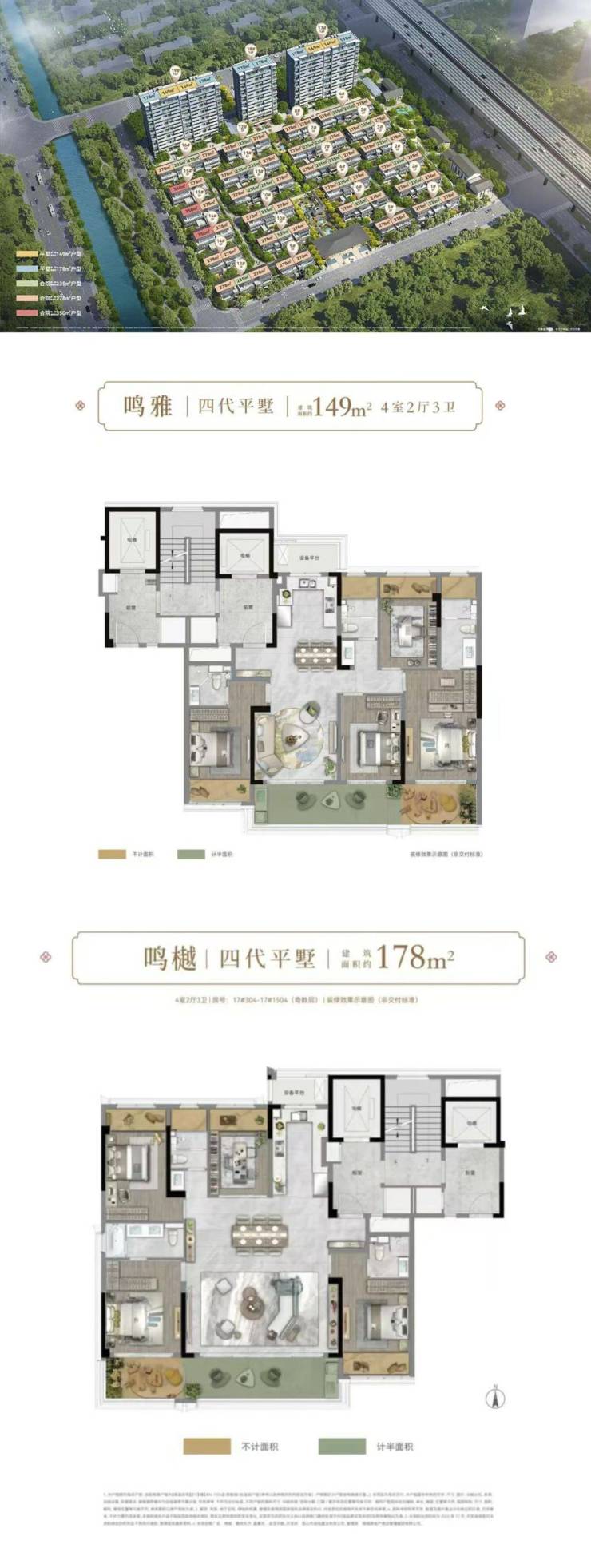 四代平墅:建面约149㎡、178㎡(南北通透,高赠送)