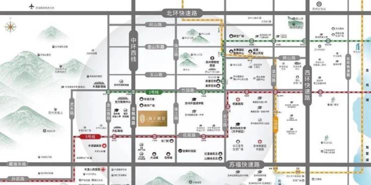 周边坐拥多个商业组团,狮山商圈(天街、金鹰)、金枫路商圈(悠方、大运城)、木渎商圈(天虹等)。最近的综合体悠方购物中心(800米),木渎影视城(2.3公里),泉屋美罗(3.2公里)