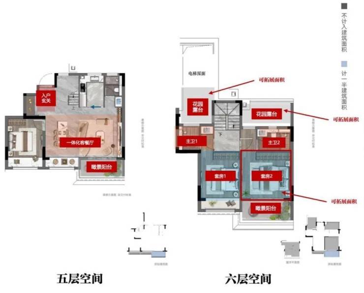 下叠(168㎡):5室2厅3卫,独立庭院+5.2米层高地下室