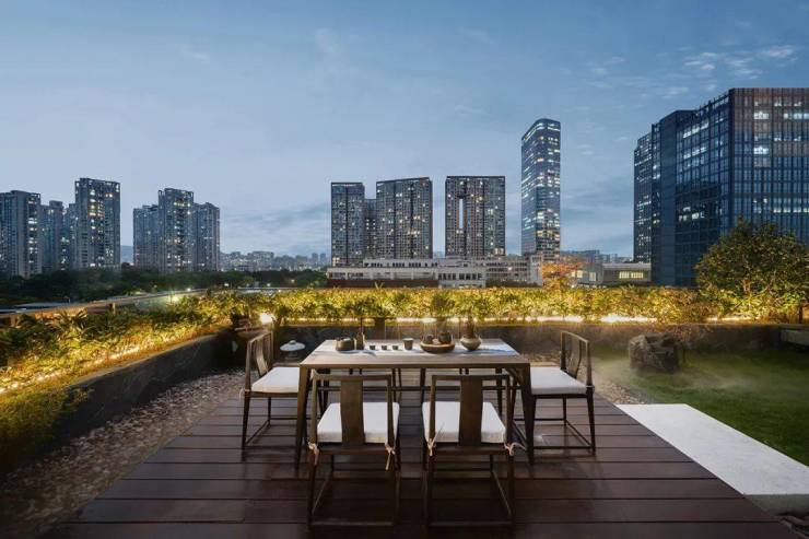 绿城和中南的观点是:越是繁华的都市中心,越需要返朴归真的园林为人们纾解放松,就像当年十城门内的凤起潮鸣一样。