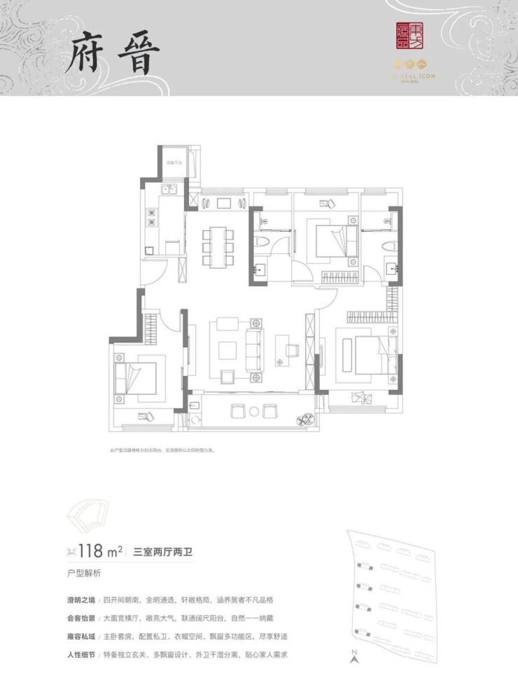 118㎡(三室两卫,总价约260-320万)