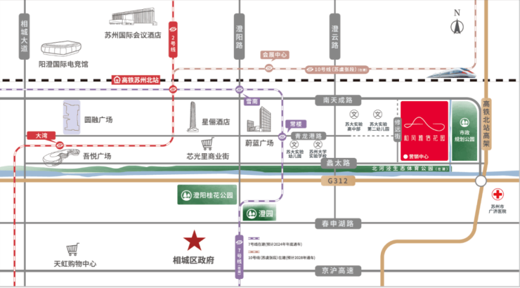 交通:临近地铁7号线常楼站(预计2024年底通车)、2号线高铁苏州北站,周边公交线路密集;快速连接中环、G312国道及苏南硕放机场