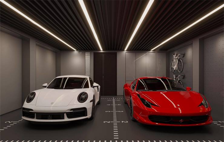 车库配置:每户40-60㎡独立车库(可停2-3辆车)