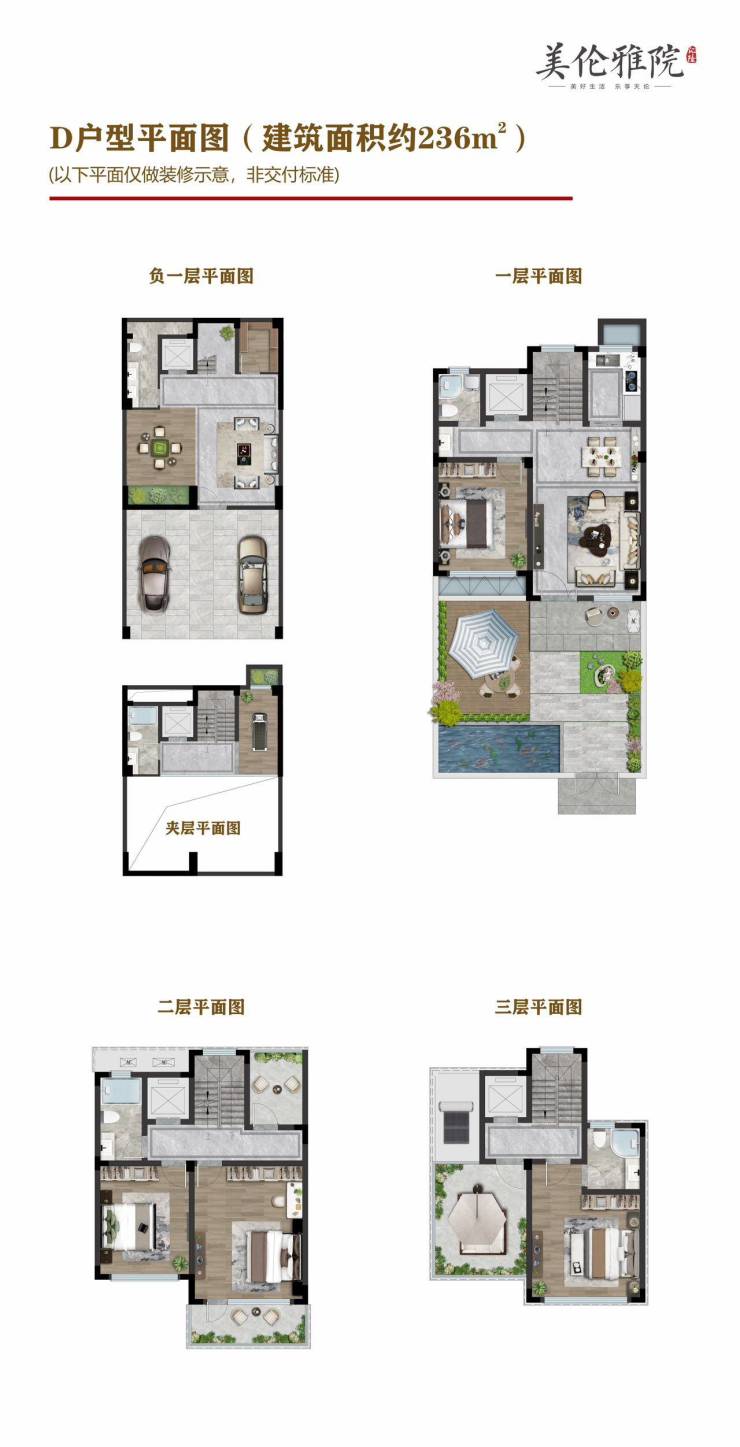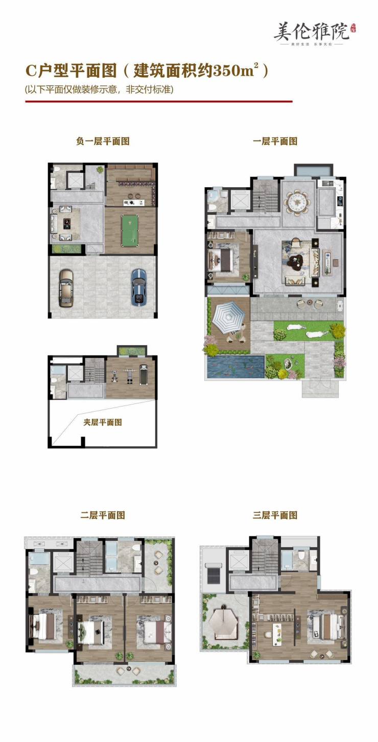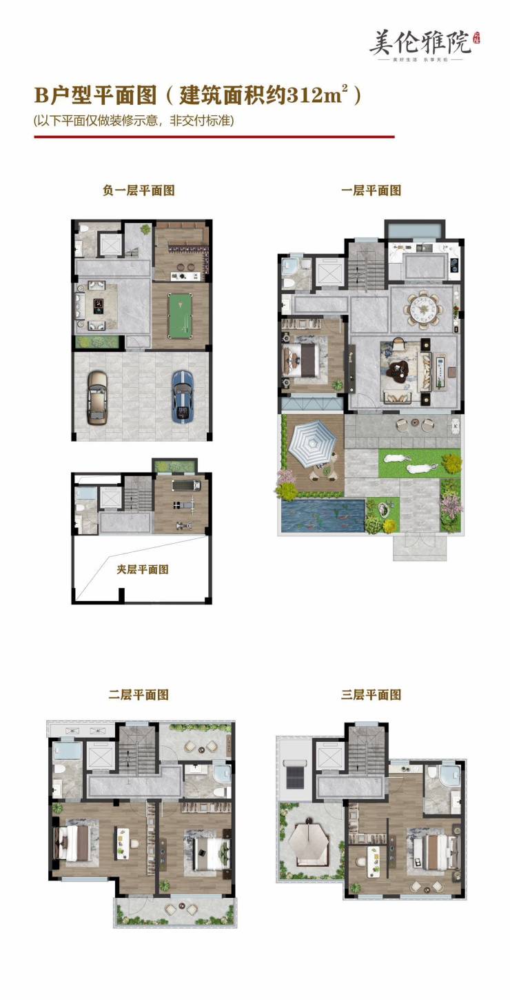 户型面积:236㎡/300㎡/312㎡/350㎡四种,地上3层+地下1层设计10