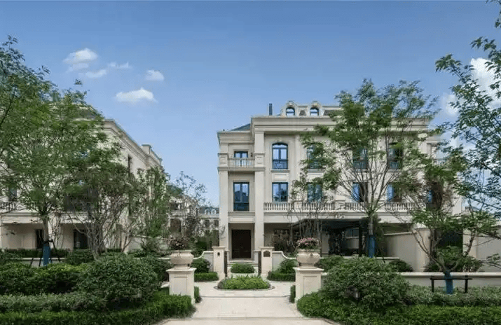 项目由25幢四联排、27幢双联排组成,采用全石材干挂立面+香槟金铝板,复刻凡尔赛宫雕花廊柱、斜坡屋顶等经典元素,建筑成本较常规提升50%。