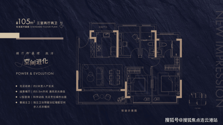 105㎡三室两厅两卫全横厅设计,南向面宽11.7米约160万起性价比高,适合刚需家庭