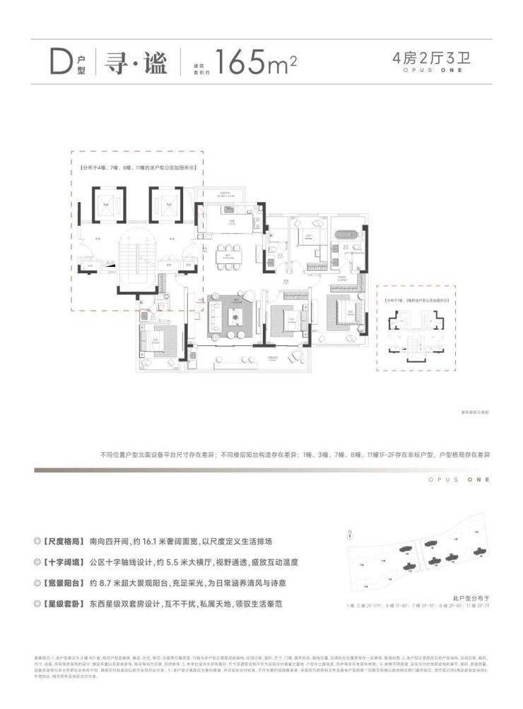 建筑面积约165-248㎡人文大平层,最大超20米面宽、阔境轴线、双套房设计(差异户型除外),同时甄选精装品牌,开启同频国际的智能化家居生活。