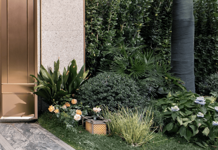 精心设计的门头是“归家”仪式的开始。入户花镜则是这场诗意旅程的圆满收尾,室内外的空间在花木的映照中交融。这种设计让人在归家时,能真正感受到与自然的融合,找到内心的宁静与安详。