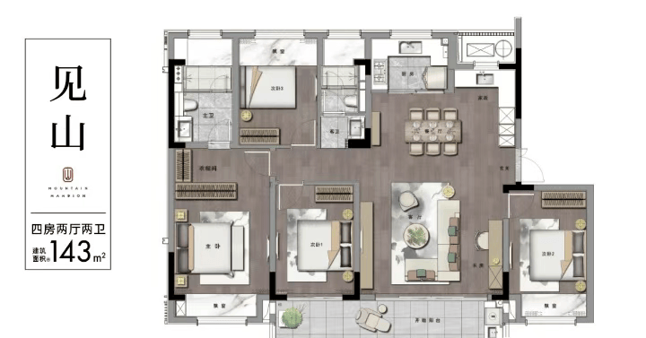 山语澜院主打143㎡四房两种主力户型,精准覆盖刚需与改善需求。143㎡户型升级为7.5米大横厅+南北双阳台,四叶草布局实现动静分离,双明卫设计避免早高峰使用冲突,完美适配三代同堂家庭。400 998 3632山语澜院营销中心电话