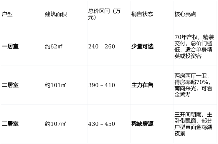 ✅ 价格参考 :备案均价约 26,000–28,000元/㎡ ,实际成交价因楼层、朝向、湖景视野浮动, 无折扣但可议价 。