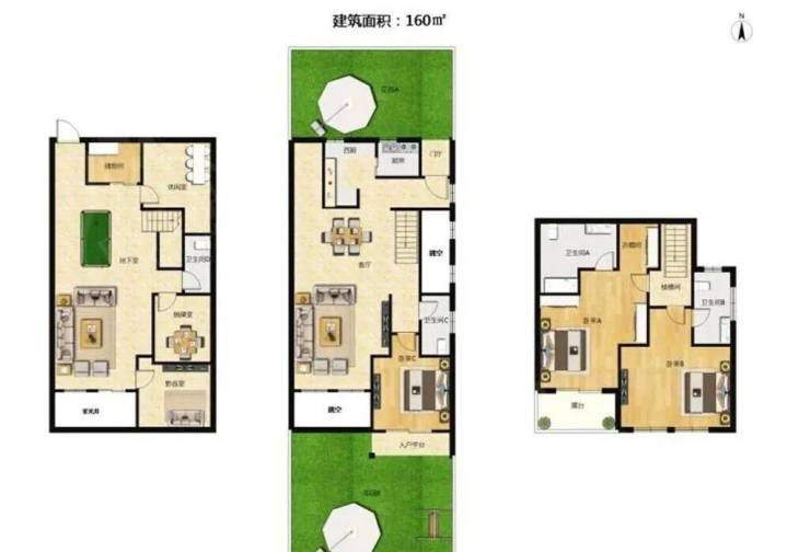 建面约160㎡下叠别墅户型图▼