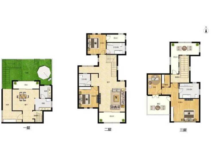 建面约150㎡上叠别墅户型图▼
