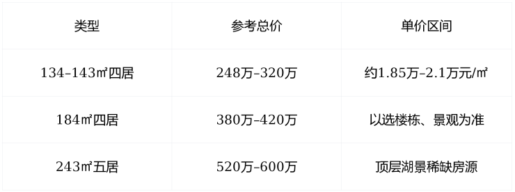 在售状态剩余房源仅56套134㎡户型已基本售罄184㎡与243㎡为当前主力尾盘不接受临时到访,必须提前预约看房