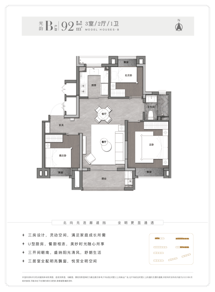 值得一提的是,项目是一梯两户无连廊,无连廊的设计,规避了外部人员在走廊上走动,很好地保障了居者的隐私性,同时中间套都能做成南北通透,采光优越。