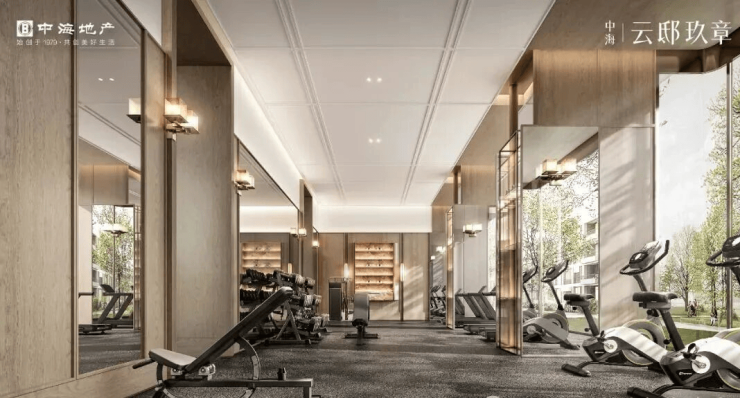 项目南区配备了一个高端会所,内含健身房,沙龙会客厅,私宴厅、恒温泳池等。恒温泳池紧邻下沉庭院,大面积落地窗设计打通了室内外的视野,中间无立柱遮挡,为家庭带来了度假式的亲子畅游体验。