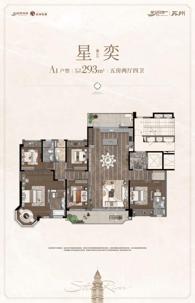 多样选择:涵盖165㎡四室两厅两卫、293㎡五室两厅四卫等多种户型,满足不同家庭结构的居住需求。