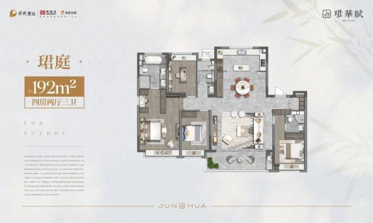 主卧套房约4米面宽更显难得,超越市面上常规180㎡户型的3.8米尺度,为生活释放出加倍舒展的可能。