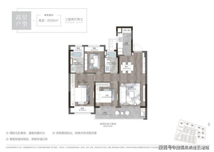 高层:105㎡(3室2厅2卫)、120㎡(3室2厅2卫)