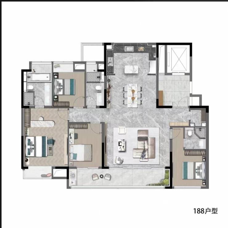 188㎡ 四居室 539万起 五开间朝南,16.3米南向面宽,LDK一体化巨厅+9米三面宽阳台