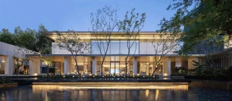 园林设计融合东方美学,连廊、光影、水景营造“生于山林、安于野”的度假氛围