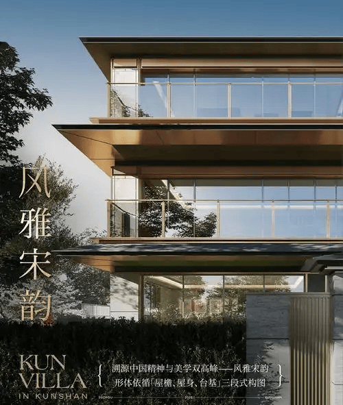 项目以宋代建筑为灵感,打造昆山首个下沉式宋风美学庭院,融合《桃园雅集图》意境,构建“可游、可观、可居”的诗意生活场景 。