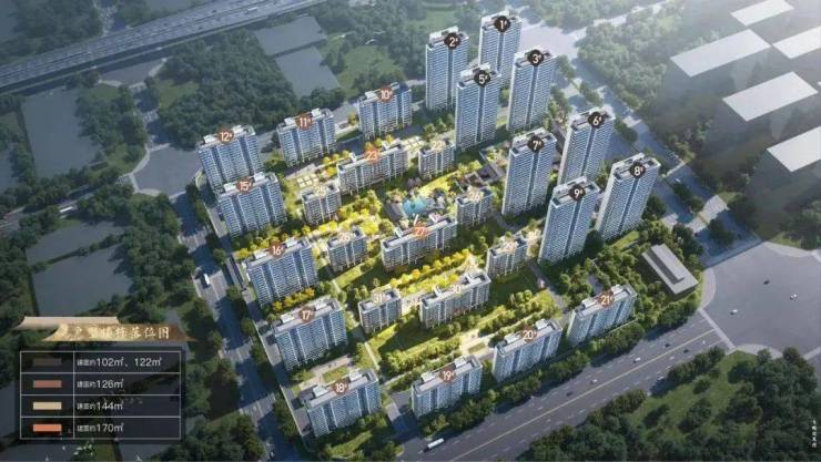 【产品面积】建筑面积约102㎡、122㎡高层、126㎡(小高层)144—170㎡洋房