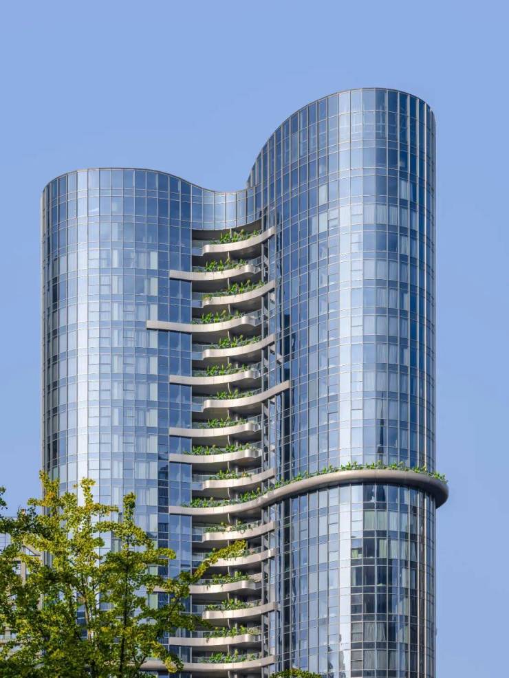 空中花园在建筑体量内部创造了充满生机与变化的专属景观,使得高楼环抱中的建筑无需过度依赖于外部城市环境带来的视觉景观。同时,从规划角度,其也是城市中的开阔露台,舒适的公共空间取代了往常封闭而严重依赖于空调调节温度的室内空间,带来流动的新鲜空气,生机勃勃的阳光。
