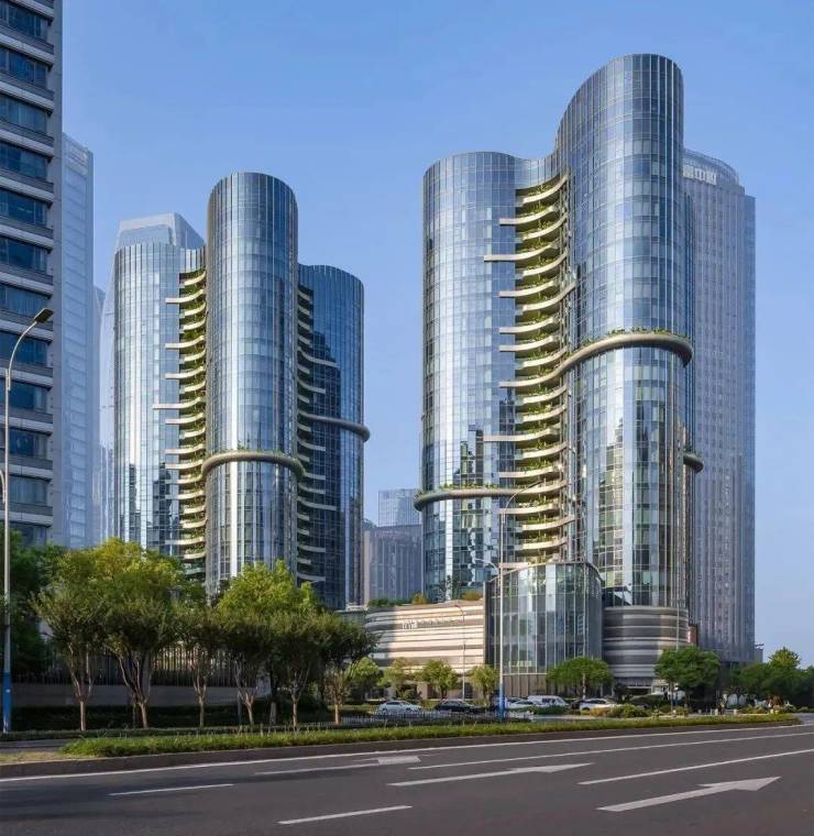 华鸿都会中心为“三叶双子恒星”,它代表了钱江世纪城的生长曲线,也是“方圆之间”的生活格局。项目以三叶草为建筑原型,这样的建筑设计也造就了每户270度的环幕都市景观,较高的窗墙比为室内提供大尺度的采光面及通透感,阳光如流水般倾泻。