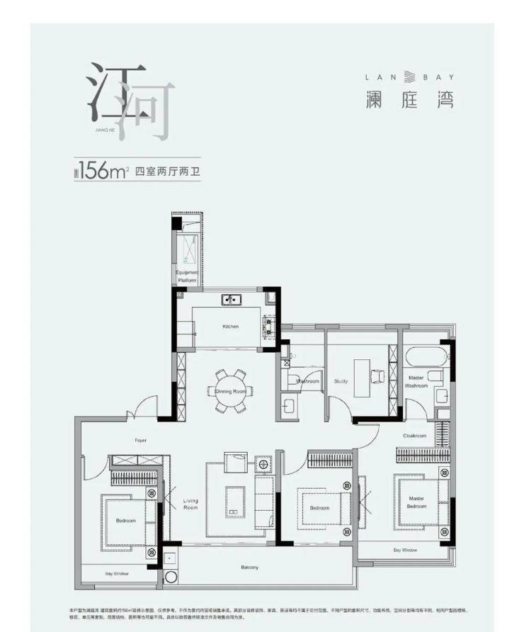 主力户型:152-156㎡四房两厅两卫,南向四开间设计