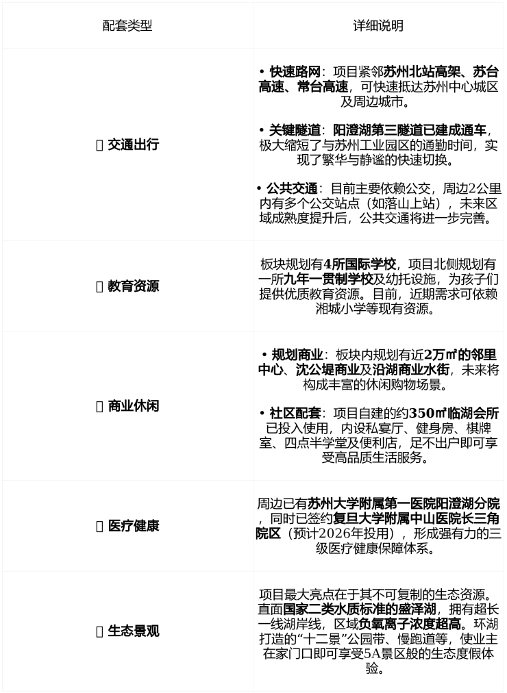 核心优势龙湖“原著系”高端产品线匠心打造 + 容积率仅1.05、绿化率约37% + 一线临盛泽湖,坐拥约800米湖岸线 + 社区内配建约350㎡临湖会所 + 龙湖智创生活自持物业 + 阳澄湖第三隧道已通车,联动园区与高铁新城双核