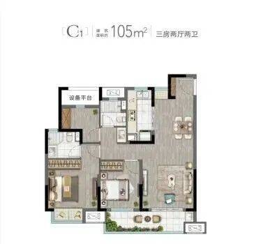 项目采用现代简约设计风格,主力户型为75-118㎡瞰景高层,包含: