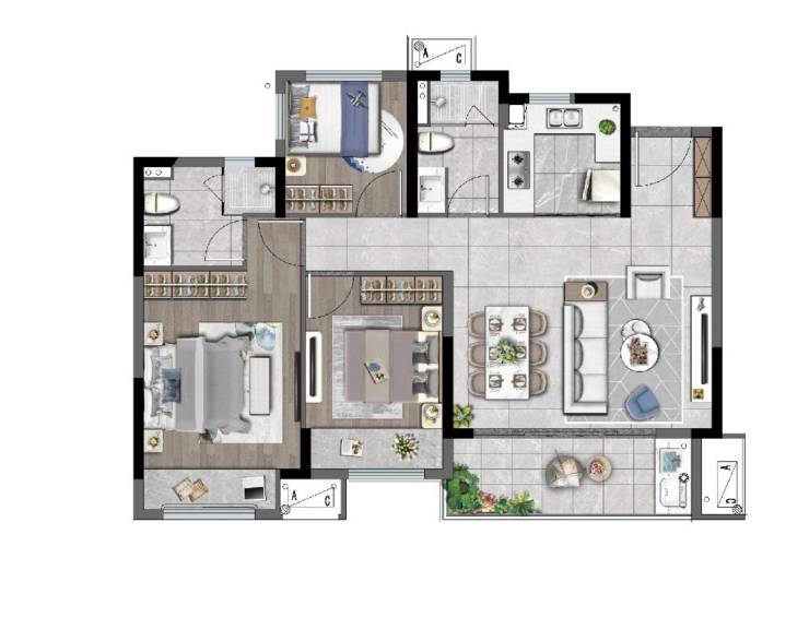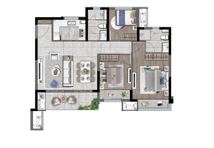 - 97㎡湖景房:景观资源稀缺,双阳台设计提升居住舒适度。
