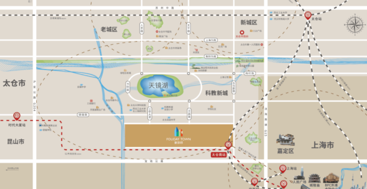 紧邻太仓南站(约500米),沪苏通铁路已通车,30min直达上海虹桥枢纽,未来可换乘上海地铁11号线北延伸段。
