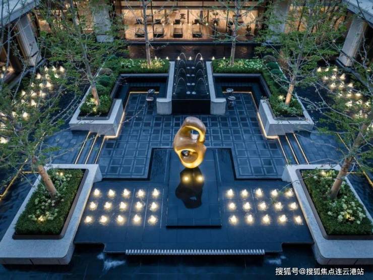 景观设计上,将东方园林造景的意境与意大利海派风格相融,中轴对称,以两轴两园三进礼序,打造高奢酒店式艺术生活园境。