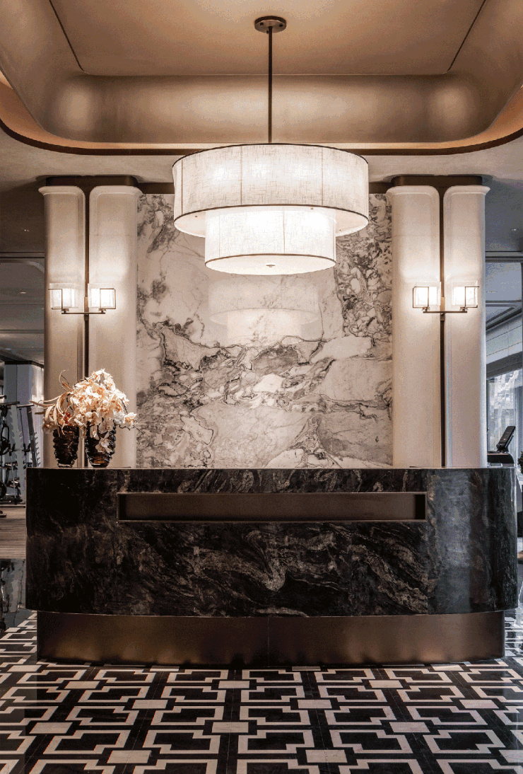 入户大堂墙面的装饰柱从传统旗袍的吸取灵感,展现东西融合的文化内涵。