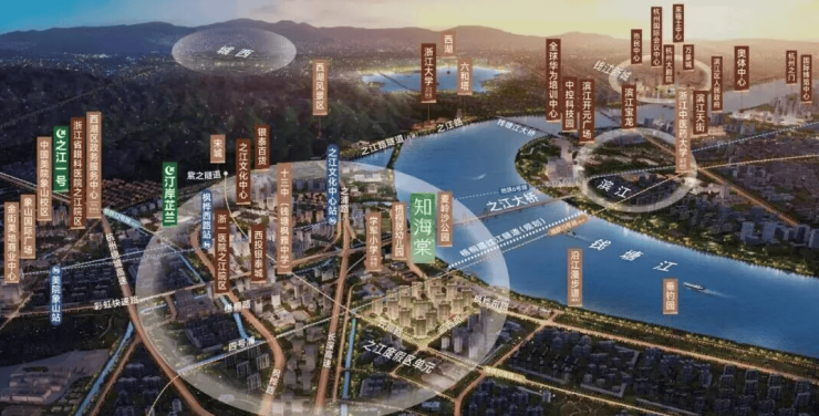 从中国美院、浙江音乐学院到筹建中的钱塘大学,大学城雏形渐显;医疗上,浙一之江院区距知海棠仅约1.6公里,不少老城西居民都愿意穿紫之隧道来此就医;商业配套上,西投银泰城同样约1.6公里,之江文化中心距知海棠2.4公里,逛商场、看展览都在生活圈内。