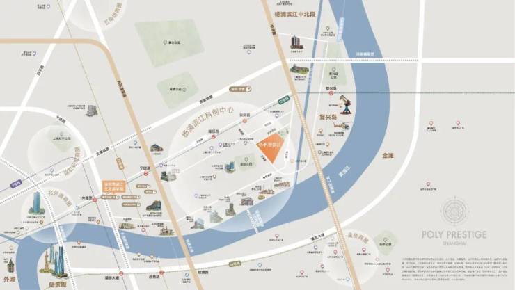 1公里内接入内环高架、北横通道、杨浦大桥,10分钟直达陆家嘴、外滩、五角场;