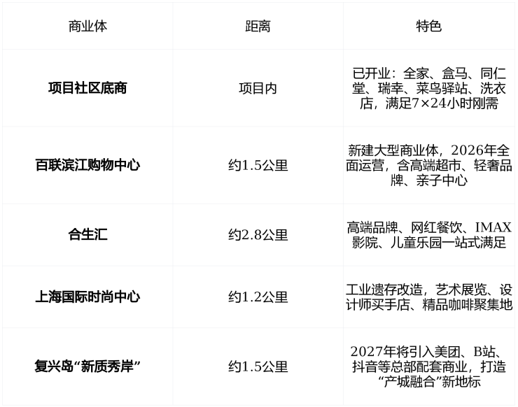 🛍️ 商业:15分钟全维生活圈,未来将升级为“科创商业极核”