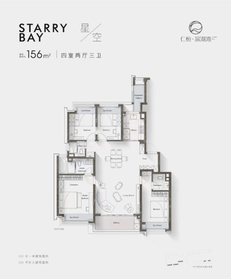 仁恒滨湖湾4008083612一共打造三大主力户型,分别为建面约156㎡、181㎡、222㎡,清一色都是改善级大平层!