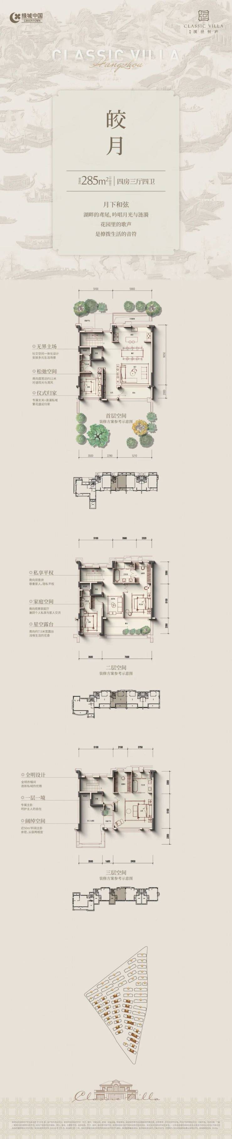 上叠:北向私密动线入户,独享约40㎡星空露台,可观星、品茶、俯瞰园林。