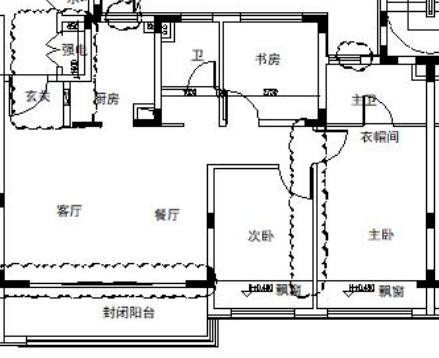 3房2厅2卫设计,三开间朝南,全屋多个飘窗,封闭式阳台;