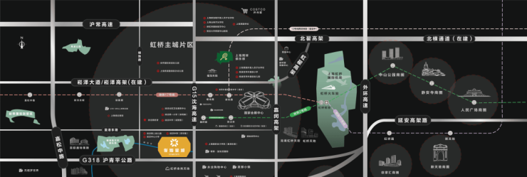 项目位于青浦区徐泾镇沪青平公路1928号,地处大虹桥国际中央商务区与长三角生态绿色一体化示范区的双重辐射区,直线距离虹桥主城区仅2.8公里,占据"虹桥商务区+大虹桥国际社区+滨水生态区"三圈交汇点。交通配套堪称"虹桥通勤王者":