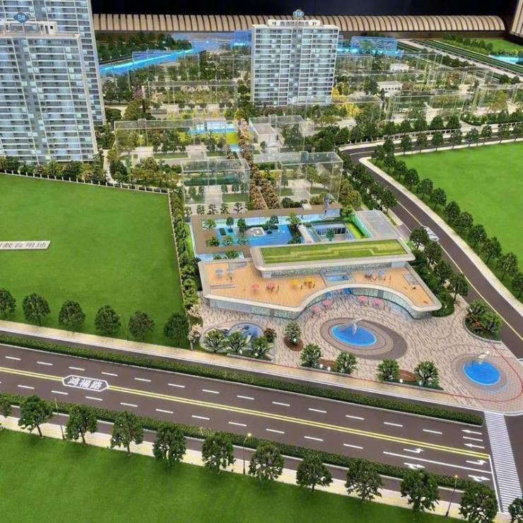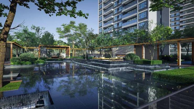 社区内 : “归心即是度假”理念 , 拔除两栋楼,打造约10,000㎡沉浸式微度假园林 , 含度假水庭院、林荫活力跑道、全龄社交会客厅、儿童自然探索区、长者太极广场 。
